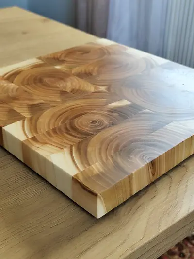 End-grain solid cutting board made from cherry.
